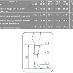 | Окружность бедра на 5 см ниже промежности | 46-49 | 49-52 | 52-55 | 55-58 | 58-62 | 62-66 |