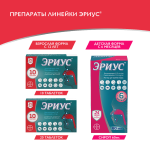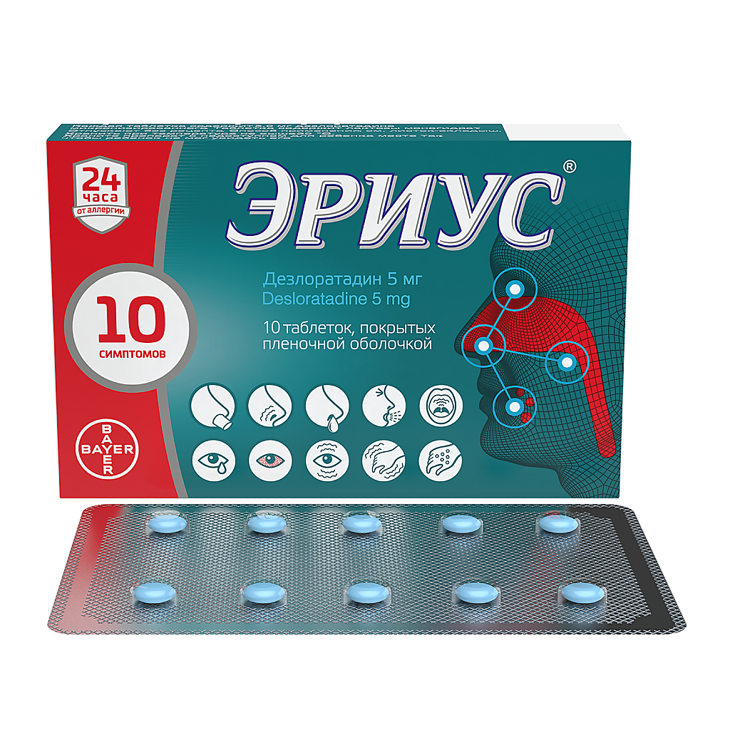 Действие лекарственного препарата Эриус® начинается в течение 30 минут после приёма внутрь и продолжается в течение 24 часов.