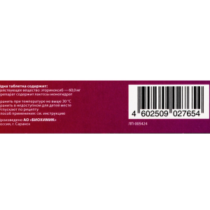 Таблетки, покрытые плёночной оболочкой, 60 мг, 90 мг, 120 мг.