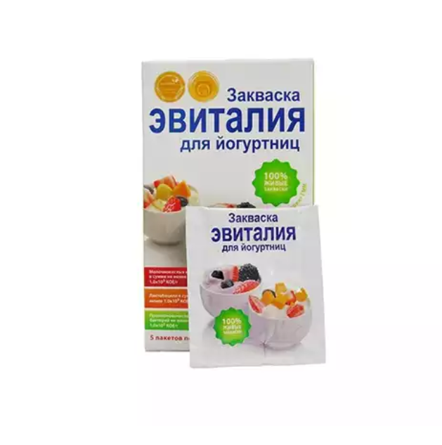 Кисломолочный продукт, приготовленный из закваски "Эвиталия для йогуртниц", полезен всем – с детства до глубокой старости."Эвиталия" - это миллиарды живых микроорганизмов, необходимых для полноценного питания человека.
