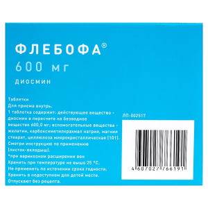 Активное вещество: диосмин в пересчёте на безводное вещество — 600 мг