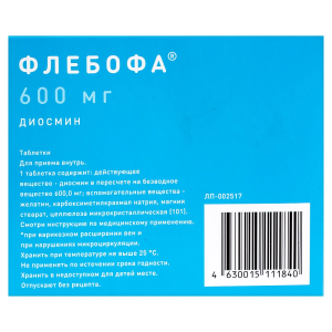 Активное вещество: диосмин в пересчёте на безводное вещество — 600 мг