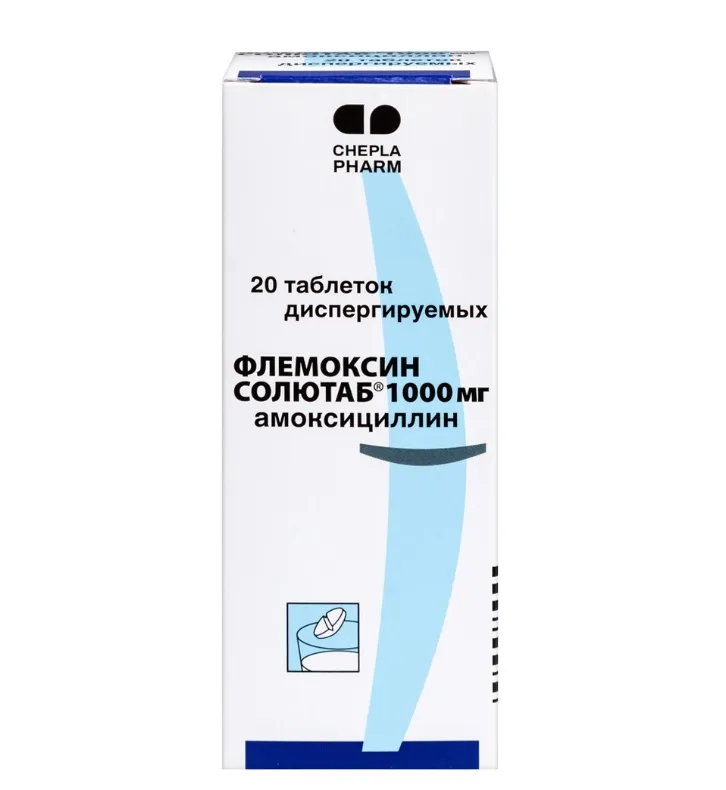 Флемоксин Солютаб® — бактерицидный антибиотик широкого спектра действия из группы полусинтетических пенициллинов. Нарушает синтез пептидогликана (опорный полимер клеточной стенки) в период деления и роста, вызывает лизис бактерий. Активен в отношении грамположительных и грамотрицательных микроорганизмов, таких как Streptococcus pyogenes, Streptococcus pneumoniae, Clostridium tetani, Clostridium welchii, Neisseria gonorrhoeae, Neisseria meningitidis, Staphylococcus aureus (не вырабатывающих бета-лактамазы), Bacillus anthracis, Listeria monocytogenes, Helicobacter pylori. Менее активен в отношении Enterococcus faecalis, Escherichia coli, Proteus mirabilis, Salmonella typhi, Shigella sonnei, Vibrio cholera. He активен в отношении микроорганизмов, продуцирующих бета-лактамазы, Pseudomonas spp., индол-положительных Proteus spp., Serratia spp., Enterobacter spp. Штаммы, продуцирующие пенициллиназу, резистентны к действию амоксициллина.