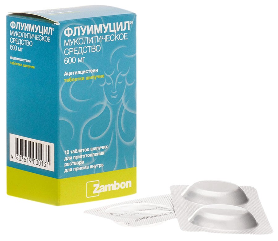 Одна таблетка содержит: активное вещество — ацетилцистеин 600 мг вспомогательные вещества: лимонная кислота 680 мг, натрия гидрокарбонат 500 мг, аспартам 20 мг, ароматизатор лимонный 100 мг.