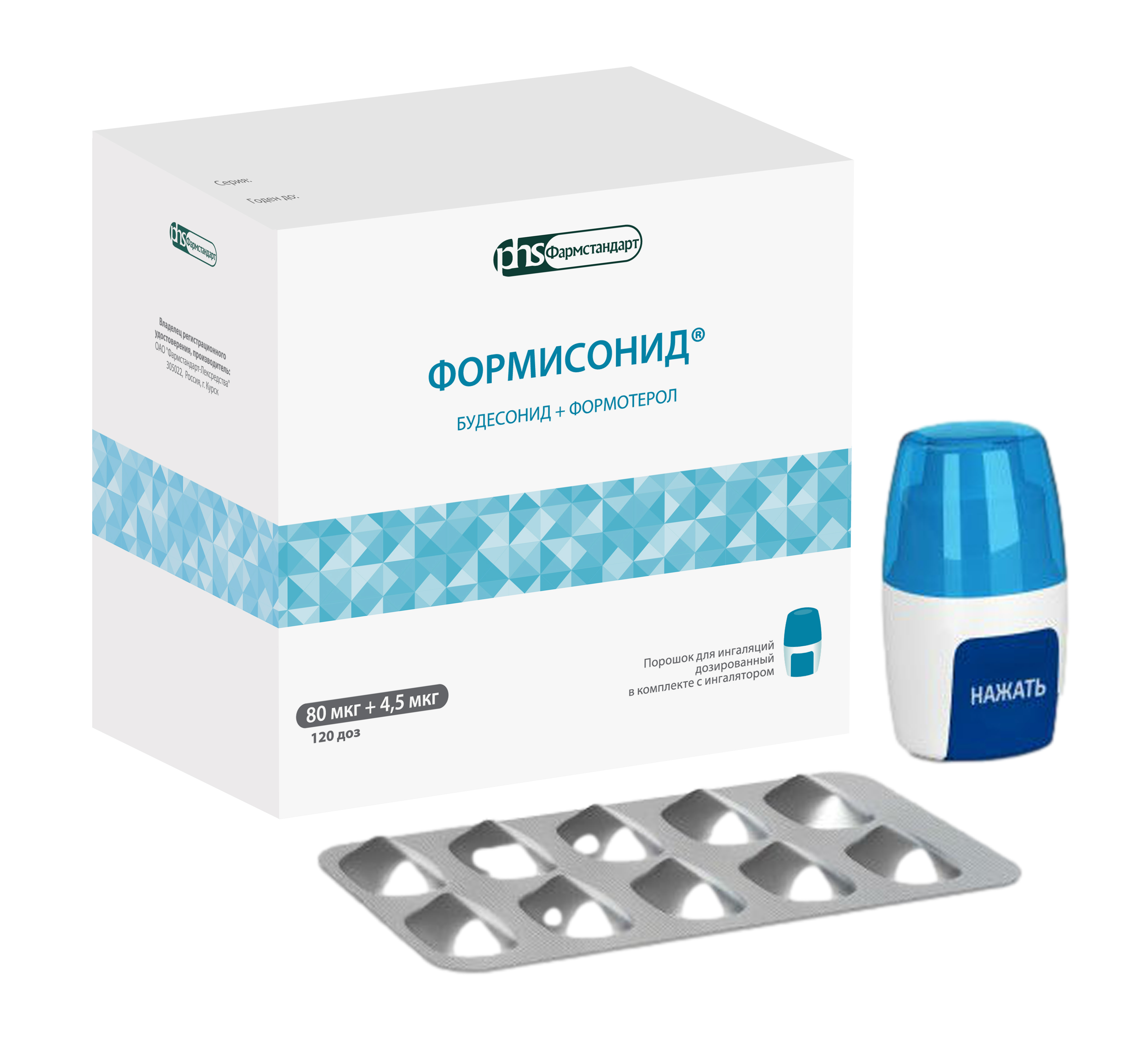 Порошок для ингаляций дозированный, 80 мкг+4,5 мкг, 160 мкг+4,5 мкг, 320 мкг+9 мкг.