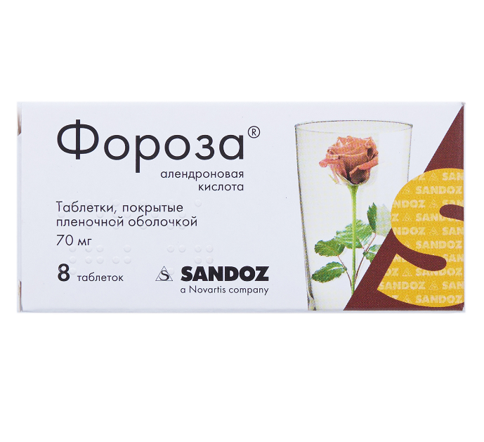 Для обеспечения надлежащего всасывания препарата Фороза® таблетки необходимо принимать утром натощак, не менее чем за 30 мин до первого приема пищи, напитков или других лекарственных препаратов, запивая стаканом обычной воды (не менее 200 мл). Другие напитки (включая минеральную воду) могут снизить всасывание препарата.