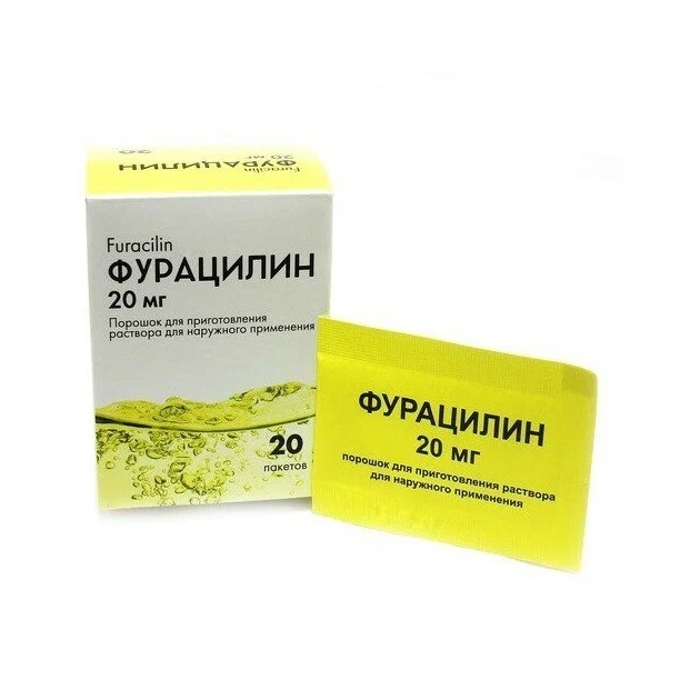 Фурацилин 20мг порошок для приготовления раствора для наружного применения пакеты №20