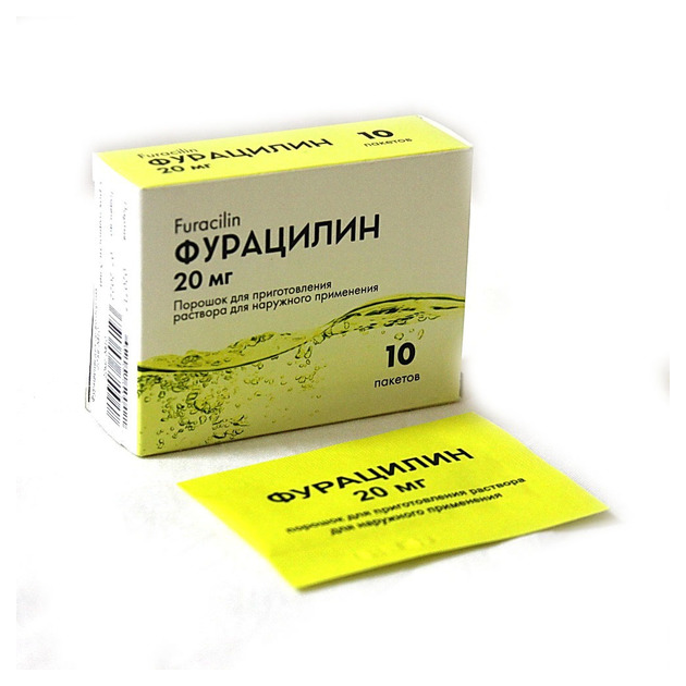 Фурацилин 20мг порошок для приготовления раствора для наружного применения пакеты №10