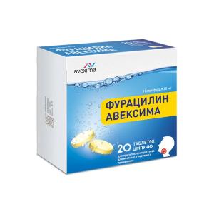 Фурацилин Авексима таблетки шипучие для приготовления раствора для местного и наружного применения 20мг №20