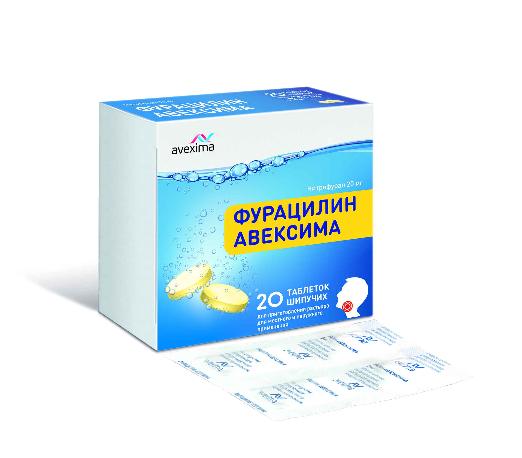 Фурацилин Авексима таблетки шипучие для приготовления раствора для местного и наружного применения 20мг №20