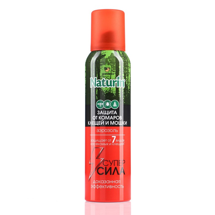 Аэрозоль от комаров, клещей и мошек "Gardex Naturin", Супер Сила, 3 в 1 - современное репеллентное средство для защиты от кровососущих насекомых (комаров, мокрецов, мошек, москитов, слепней, блох, таежных и лесных клещей). Можно наносить на кожу и на одежду.