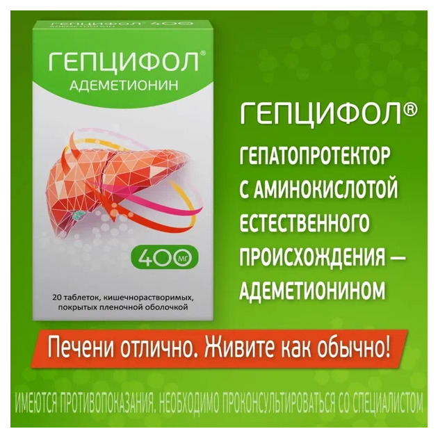 Гепцифол таблетки кишечнорастворимые покрытые плёночной оболочкой 400мг №20