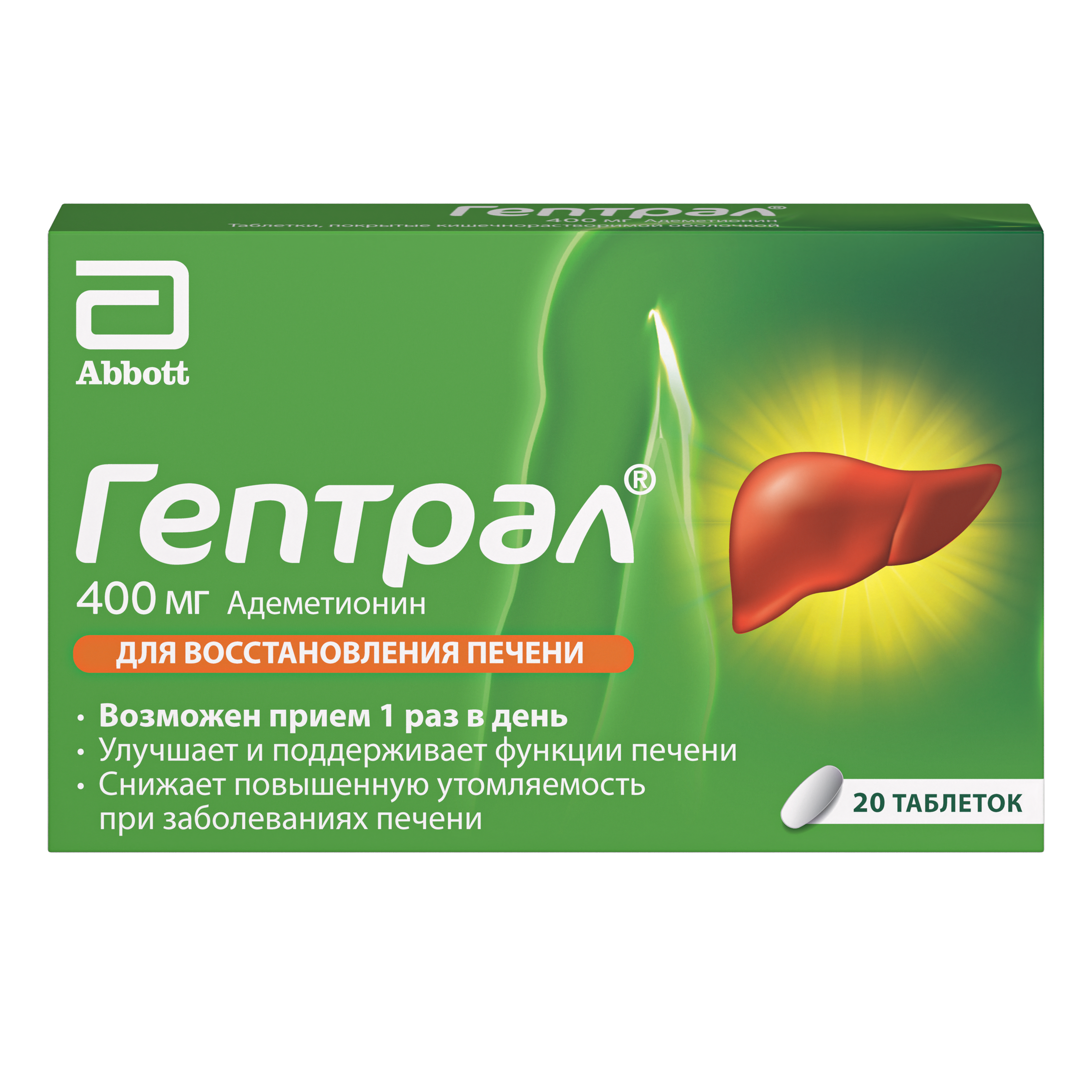 Гептрал таблетки покрытые кишечнорастворимой оболочкой 400мг №20