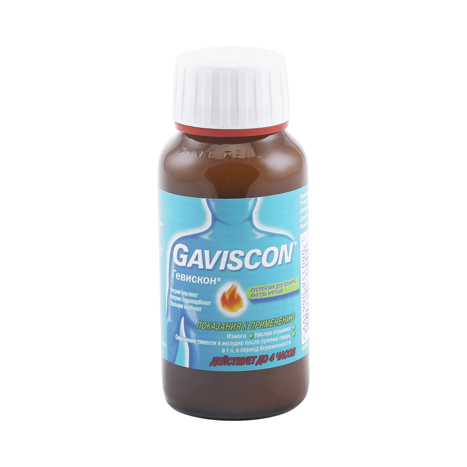 При приеме внутрь действующие вещества препарата Гевискон® быстро реагируют с кислым содержимым желудка. При этом образуется гель альгината со значением рН, близким к нейтральному. Гель образует защитный барьер на поверхности содержимого желудка, препятствуя возникновению гастроэзофагеального рефлюкса (обратному забросу содержимого желудка в пищевод) на период до четырех часов. В тяжелых случаях рефлюкса (регургитации), гель попадает в пищевод, опережая остальное желудочное содержимое, где он уменьшает раздражение слизистой оболочки пищевода.