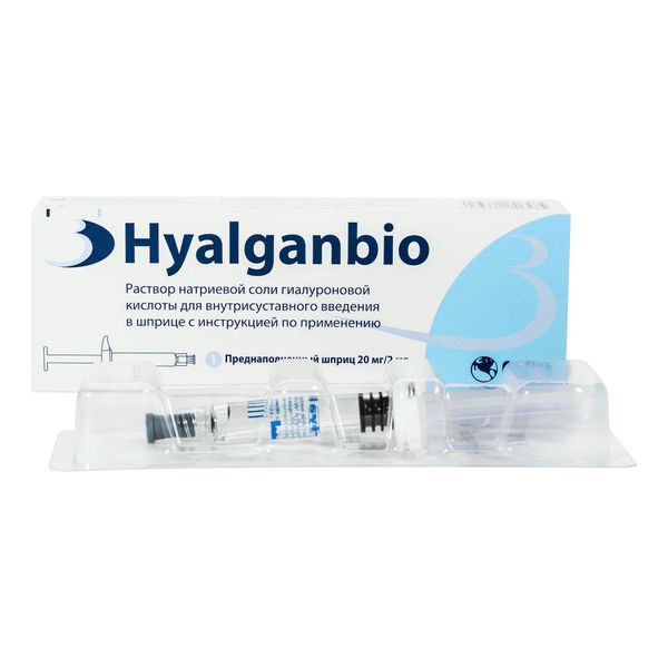 HYALGANBIO представляет собой высоковязкий раствор натриевой соли гиалуроновой кислоты с молекулярной массой 500-730 кДа в буферном физиологическом растворе натрия хлорида, pH 6,8- 7,5. Раствор (20 мг/2 мл), содержащийся в шприцах, поставляется стерильным и не содержит бактериальных эндотоксинов. Гиалуроновая кислота, полисахарид из семейства глюкозамингликанов, естественным образом представлена во многих человеческих тканях, например, в хрящах и синовиальной жидкости. Эндогенная гиалуроновая кислота обеспечивает вязкость и эластичность синовиальной жидкости, которые являются фундаментальными характеристиками для функционирования суставов. При травматических и дегенеративных заболеваниях суставов возникает недостаточное количество гиалуроновой кислоты и меньшая степень полимеризации в синовиальной жидкости и хрящах, что ведет к нарушению функционирования суставов и болезненной симптоматологии. Множество данных из литературы указывает на то, что внутрисуставное введение экзогенной натриевой соли гиалуроновой кислоты способно восстанавливать реологические свойства синовиальной жидкости. HYALGANBIO представляет собой изделие для временного восполнения синовиальной жидкости у пациентов, страдающих травматическими или дегенеративными заболеваниями суставов, например, остеоартритом, который вызывает изменения функциональных характеристик синовиальной жидкости. Внутрисуставное введение HYALGANBIO с недельными интервалами улучшает симптомы, ослабляя боль (в состоянии покоя и при движении), и улучшает функционирование суставов.