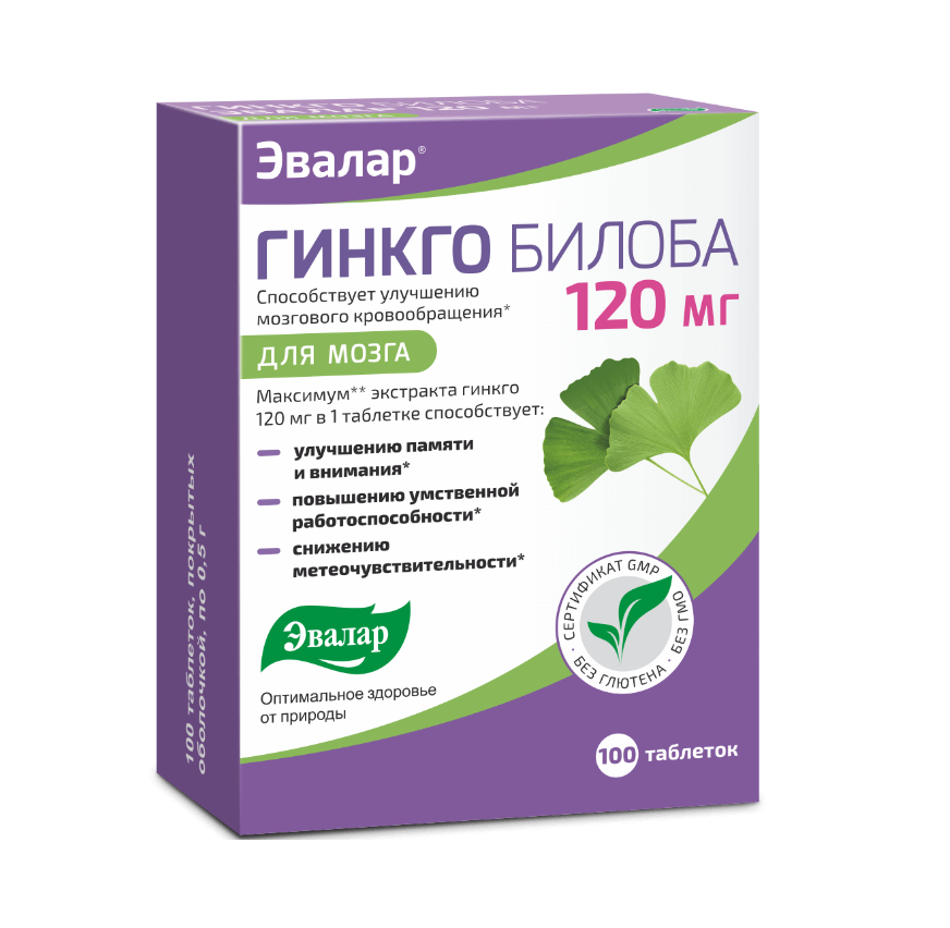 Среди биологически активных добавок для нормализации мозгового кровообращения на основе экстракта гинкго одна из самых популярных — Гинкго Билоба от компании «Эвалар».* Активно действуя на сосуды мозга, улучшая реологические свойства (текучесть) крови, экстракт гинкго способствует нормализации его кровоснабжения и повышению умственной работоспособности. Не случайно более 60% пожилых пациентов в Германии и более 70% — во Франции постоянно принимают биодобавки на основе экстракта гинкго!