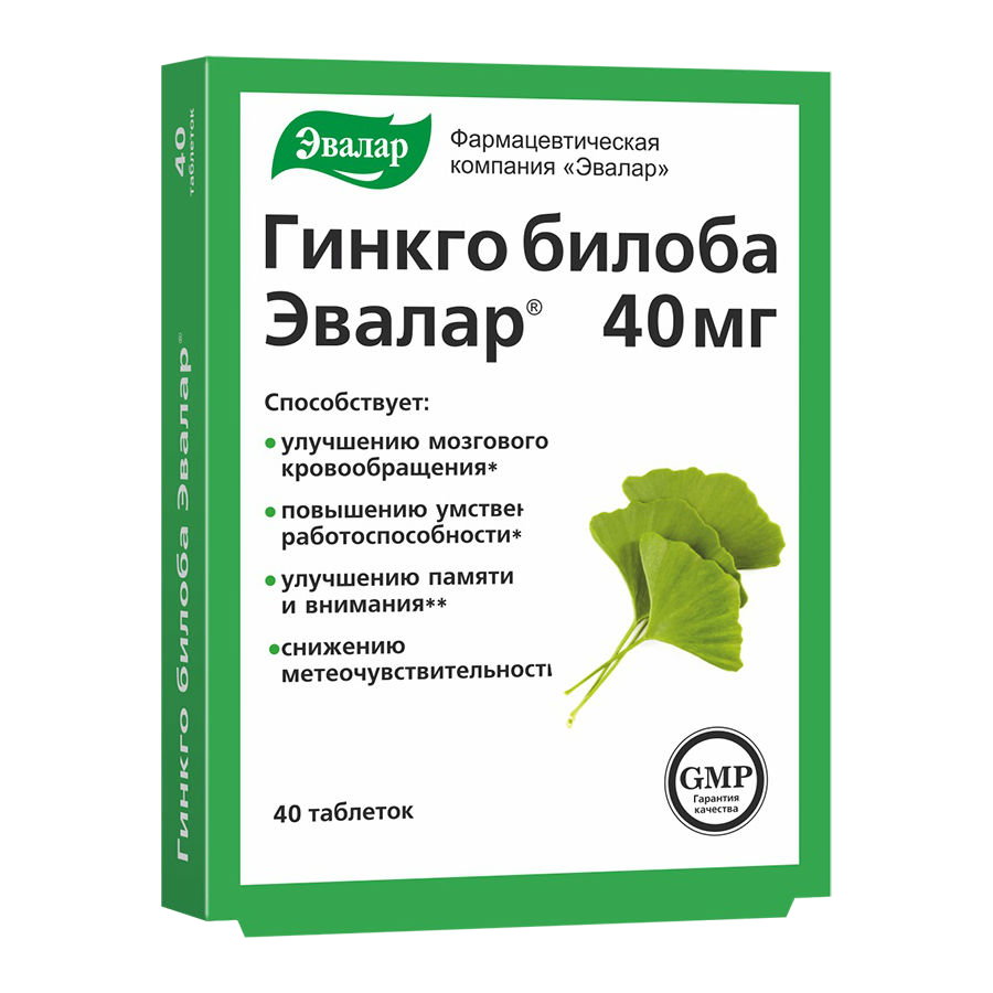 | В каждой таблетке Гинкго Билоба Эвалар — 40 мг немецкого стандартизированного экстракта гинкго билоба с высоким содержанием активных веществ. |