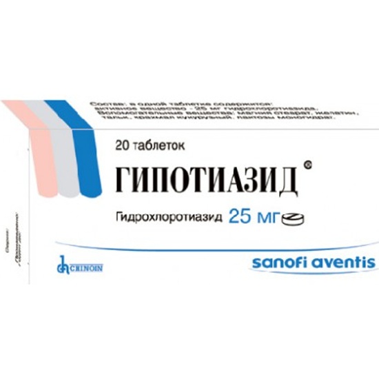 Активное вещество: гидрохлоротиазид 25 мг