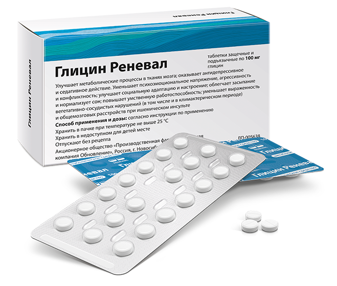 Глицин Реневал таблетки защечные и подъязычные 100мг №120