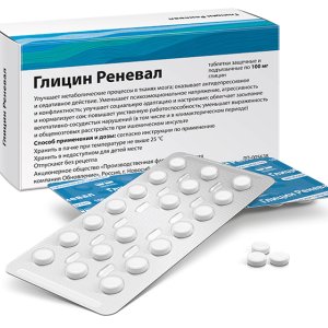 Глицин ;— заменимая аминокислота, центральный нейромедиатор тормозного типа действия: улучшает метаболические процессы в тканях мозга; оказывает антидепрессивное и седативное действие; обладает глицинергическим и ГАМК-ергическим, альфа1-адреноблокирующим, антиоксидантным и антитоксическим действием; регулирует деятельность глутаматных (NMDA) рецепторов, за счёт чего уменьшает психоэмоциональное напряжение, агрессивность и конфликтность; улучшает социальную адаптацию и настроение; облегчает засыпание и нормализует сон; повышает умственную работоспособность; уменьшает выраженность вегетативно-сосудистых нарушений (в том числе и в климактерическом периоде) и общемозговых расстройств при ишемическом инсульте и черепно-мозговой травме; снижает токсическое действие этанола на центральную нервную систему.