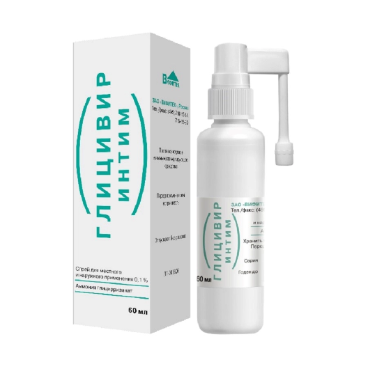 Глицивир интим спрей для местного и наружного применения 0,1% флакон 60мл + насадка распылитель