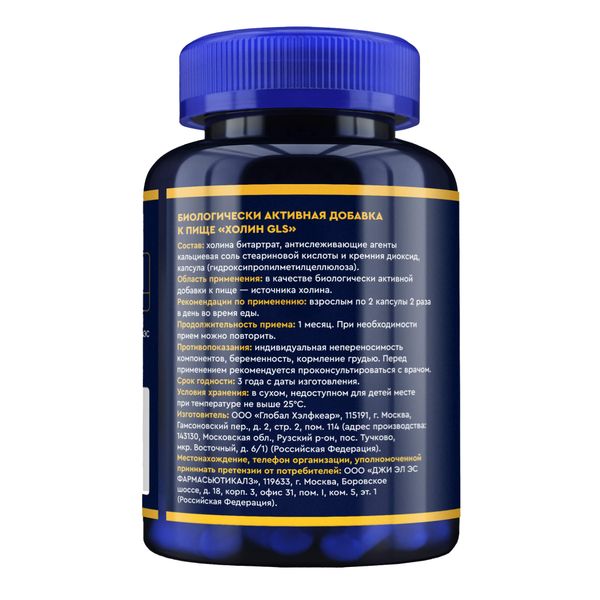 Холина битартрат, антислеживающие агенты кальциевая соль стеариновой кислоты и кремния диоксид, капсула (гидроксипропилметилцеллюлоза,желатин).