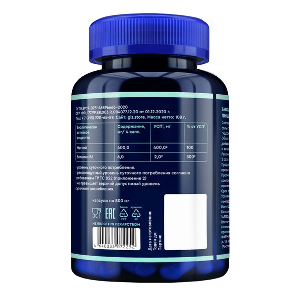 GLS Магния цитрат с витамином В6 капсулы 500мг №180