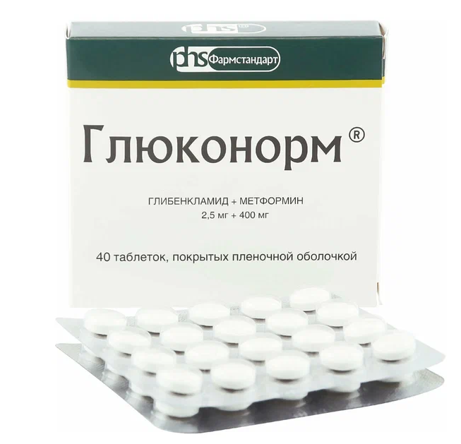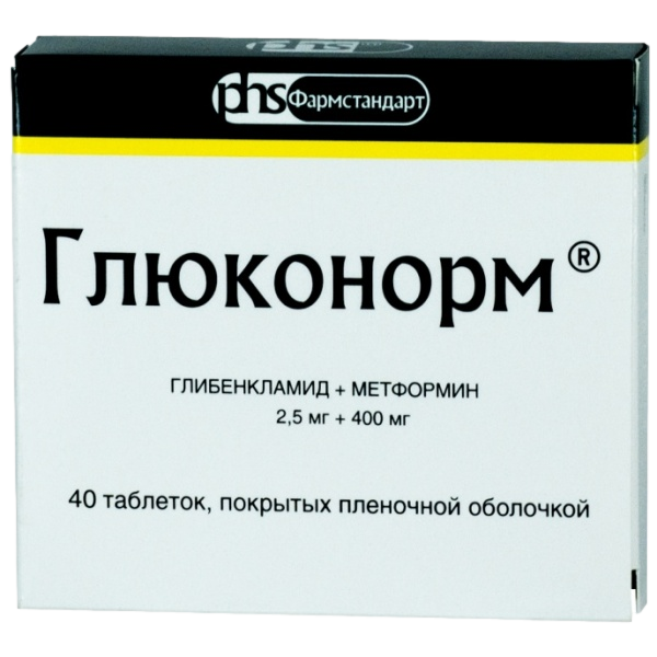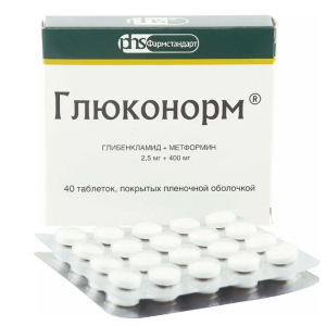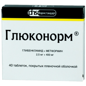 Глюконорм® представляет собой фиксированную комбинацию двух пероральных гипогликемических средств различных фармакологических групп: метформина и глибенкламида.