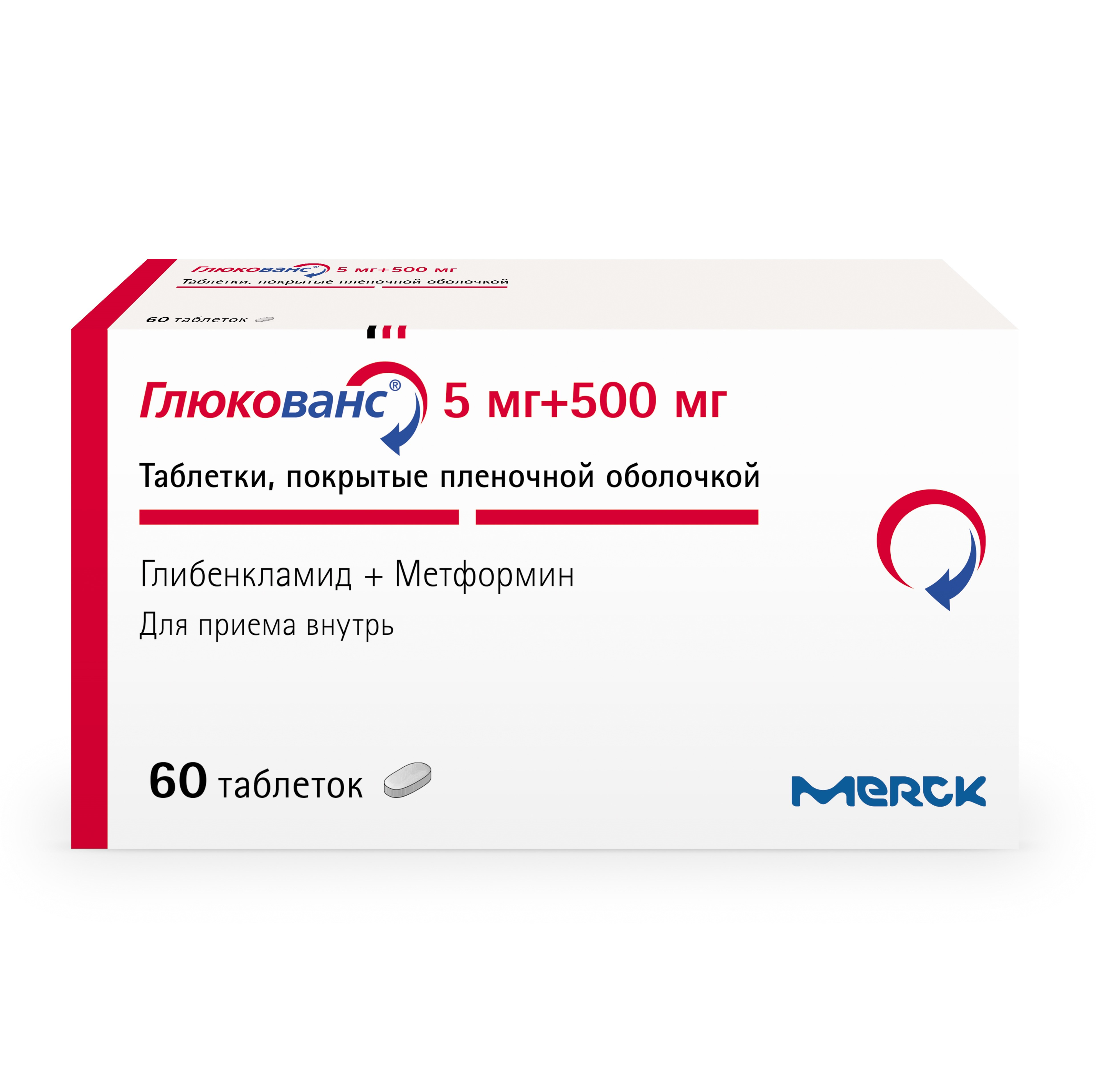 Глюкованс таблетки покрытые плёночной оболочкой 5мг+500мг №60