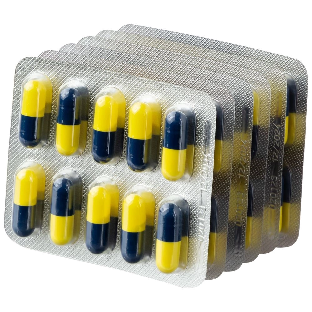 По 10 или 15 капсул в контурной ячейковой упаковке из плёнки ПВХ и фольги алюминиевой печатной лакированной.