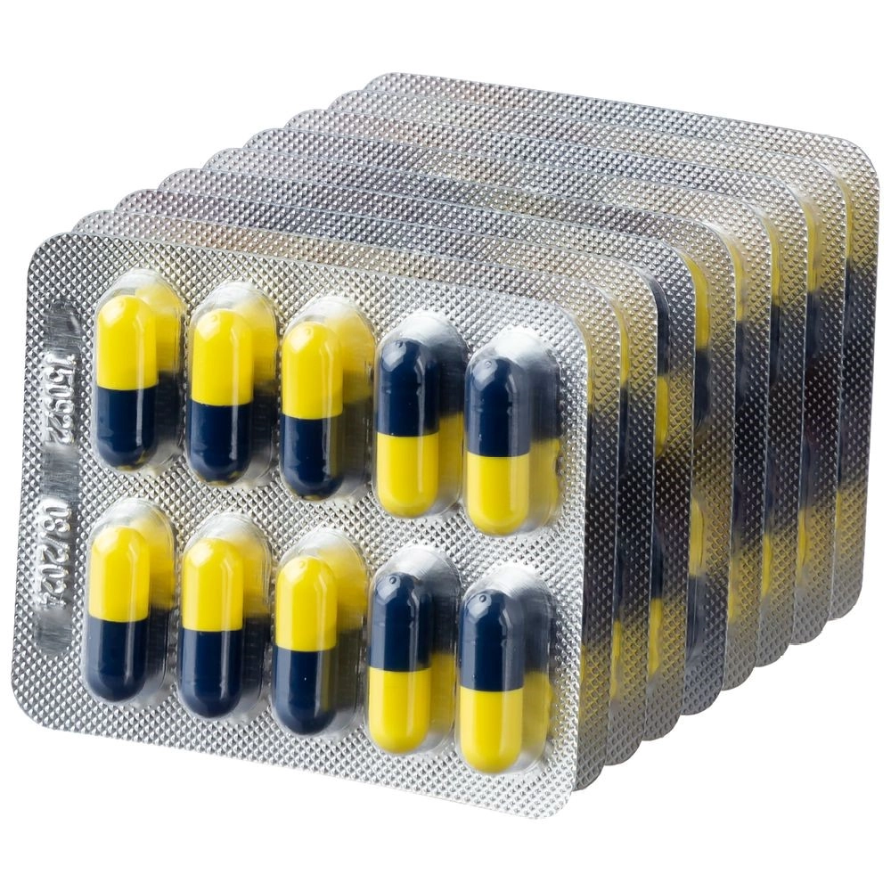 По 1, 3, 6, 9 или 12 контурных ячейковых упаковок по 10 капсул или по 2, 4, 6 или 8 контурных ячейковых упаковок по 15 капсул вместе с инструкцией по медицинскому применению помещают в пачку из картона коробочного.