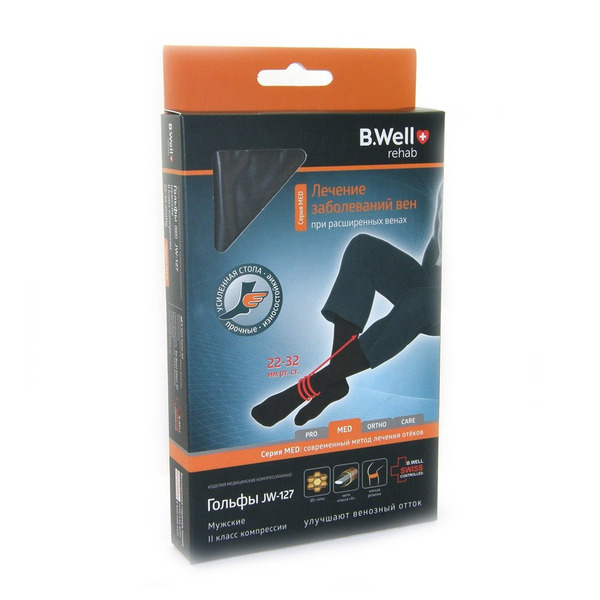 Гольфы компрессионные мужские B.Well rehab JW-127, II класс компрессии 22-32 мм рт. ст. предназначены для улучшения венозного оттока при заболевании вен у мужчин.