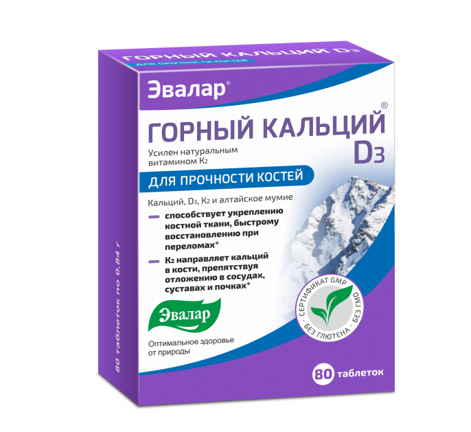 Кальций словно «трудный ребенок» в семье микроэлементов. Для его усвоения требуется немало дополнительных условий. Одно из них — присутствие витамина D3 и К2, а самое главное — наличие микроэлементов: марганца, меди, бора, фосфора, цинка, кремния и т. д. Горный кальции D3 с мумие полностью отвечает этим условиям.