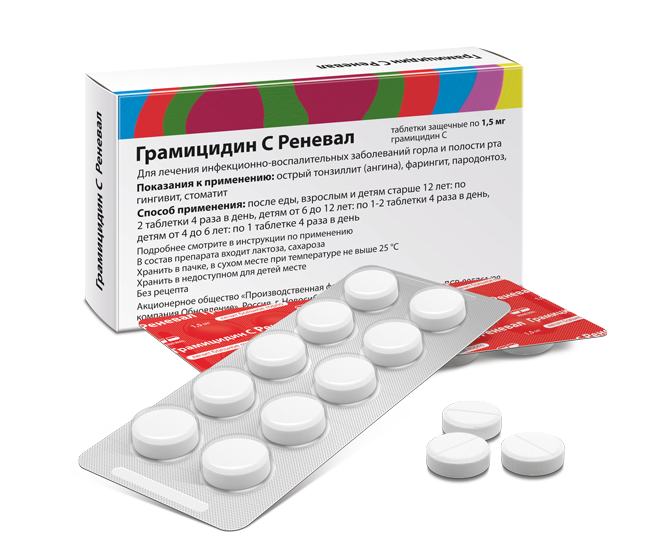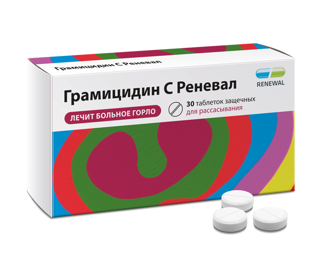 Грамицидин С Реневал таблетки защечные 1,5мг №30