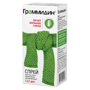 Граммидин спрей дозированный для местного применения 0,06мг+0,1мг/доза 112 доз