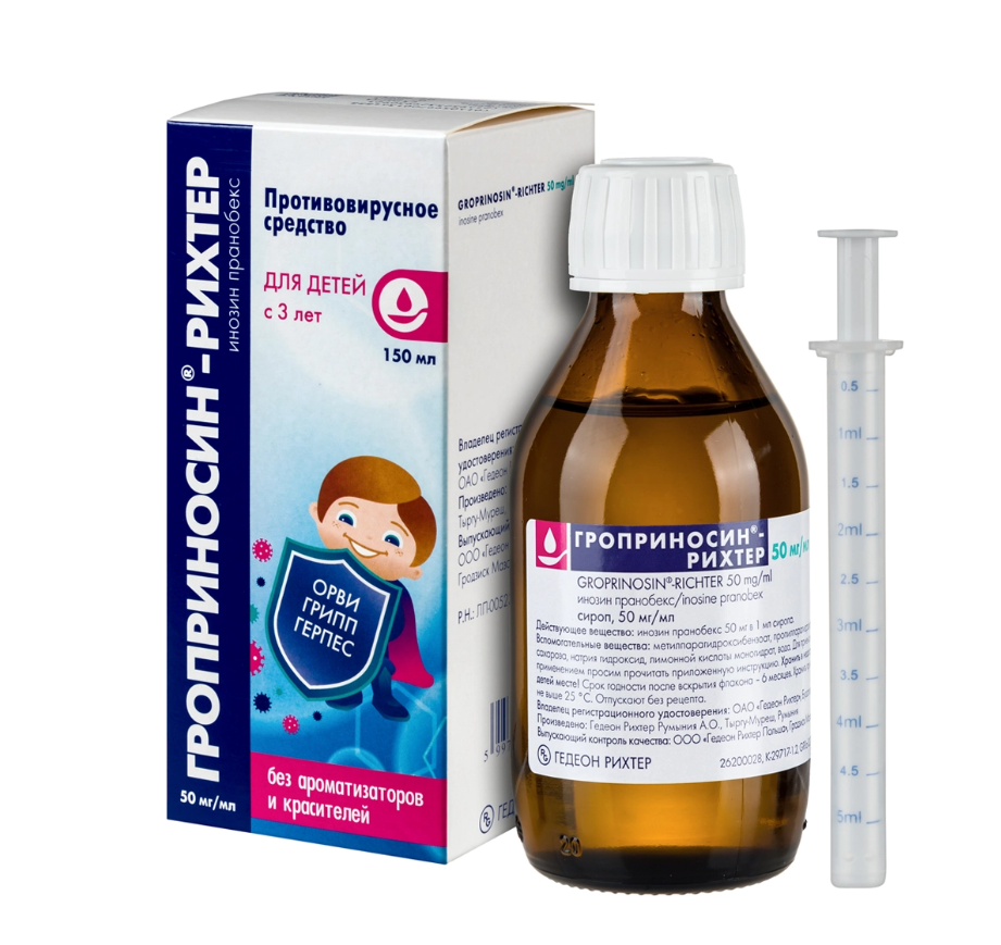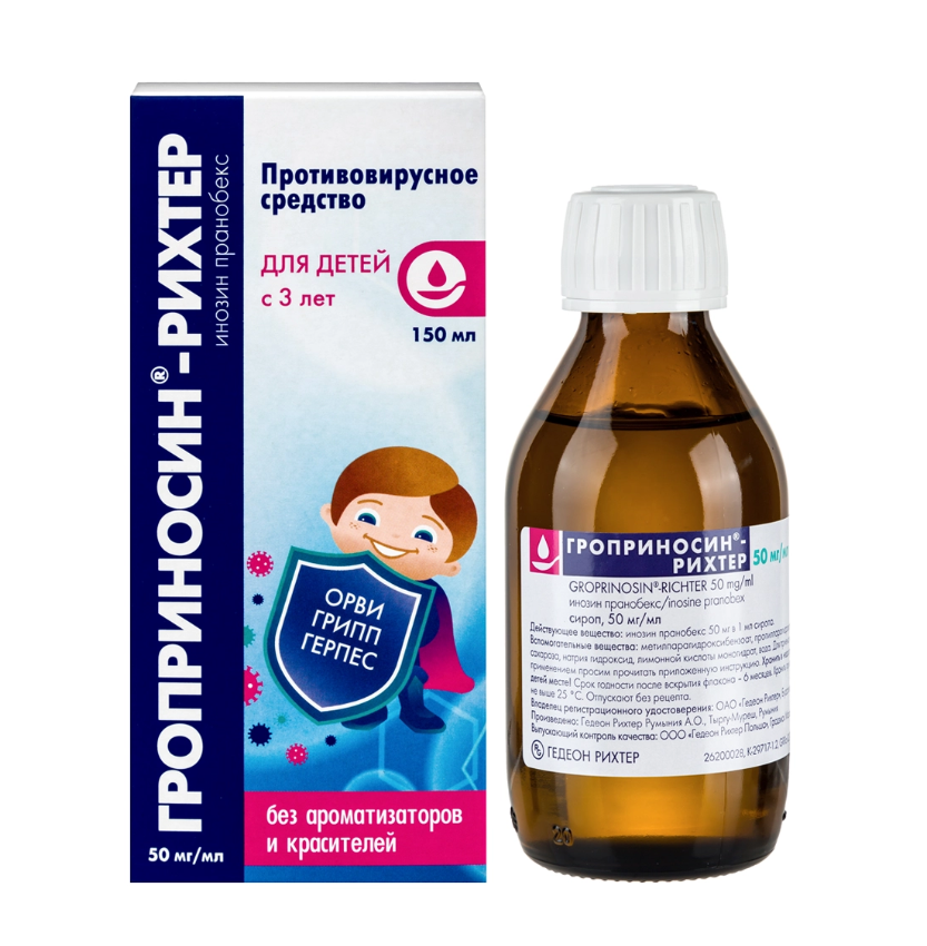 Гроприносин-Рихтер сироп 50мг/мл флакон 150мл