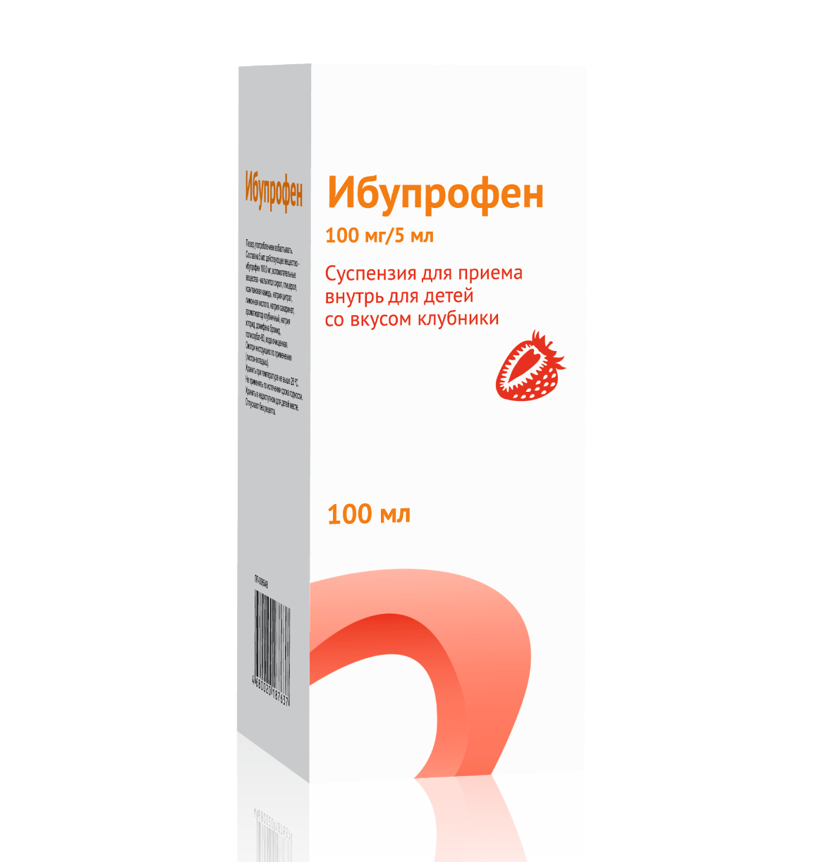 Ибупрофен суспензия для приёма внутрь для детей со вкусом клубники 100мг/5мл флакон 100мл