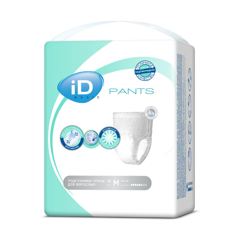 Подгузники-трусы iD PANTS напоминают обычное белье, они идеально прилегают к телу, незаметны под одеждой и не стесняют движений. Это прекрасное решение для использования при средней и тяжелой степени недержания для людей, ведущих активный образ жизни. Они обеспечивают моментальное впитывание и удержание влаги, благодаря чему кожа остается сухой, отличную защиту от протеканий и блокирование неприятных запахов. Мягкие, как хлопок, материалы дарят ощущение комфорта.