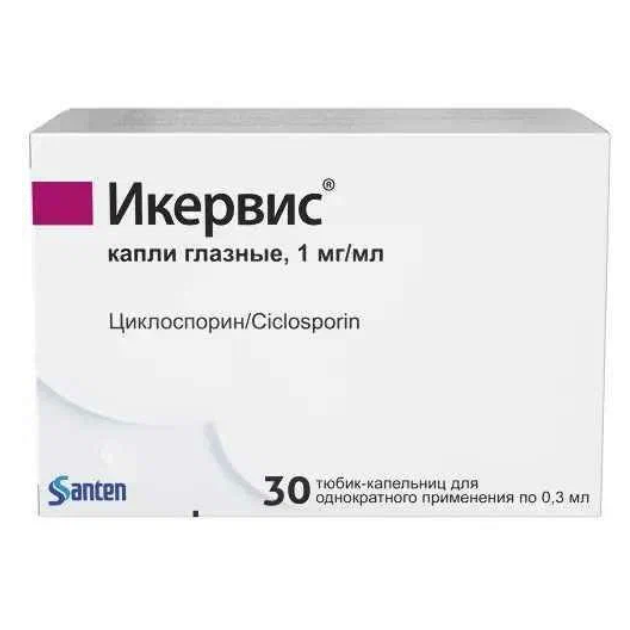 Препарат Икервис® применяется для лечения тяжёлого кератита у взрослых (воспаление роговицы, прозрачного слоя в передней части глаза). Его назначают пациентам с синдромом сухого глаза, у которых не наступило улучшения на фоне лечения заменителями слезы (искусственными слезами).