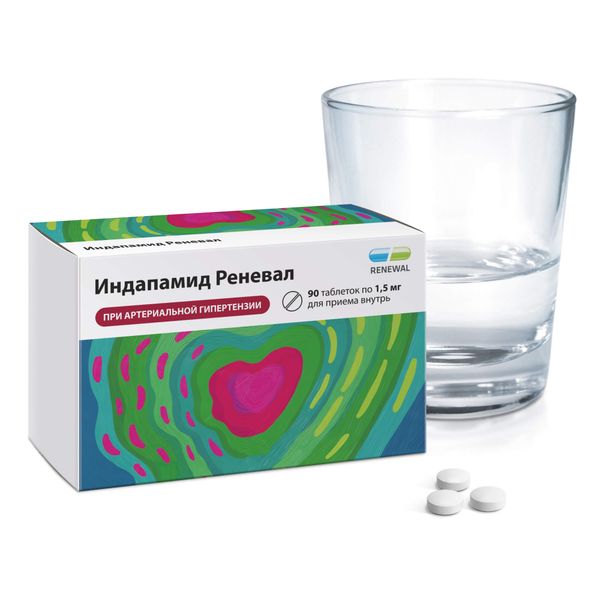 Индапамид Реневал таблетки с пролонгированным высвобождением покрытые пленочной оболочкой 1,5мг №90