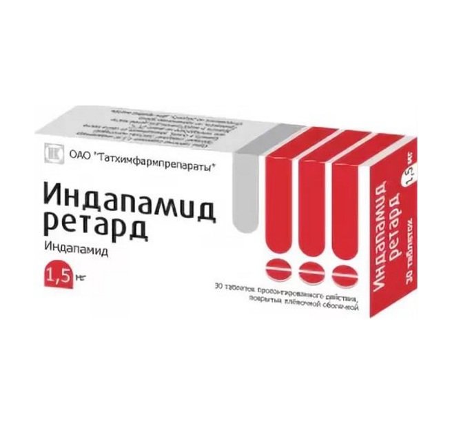 Индапамид ретард таблетки пролонгированного действия покрытые пленочной оболочкой 1,5мг №30 (отпуск 5шт)