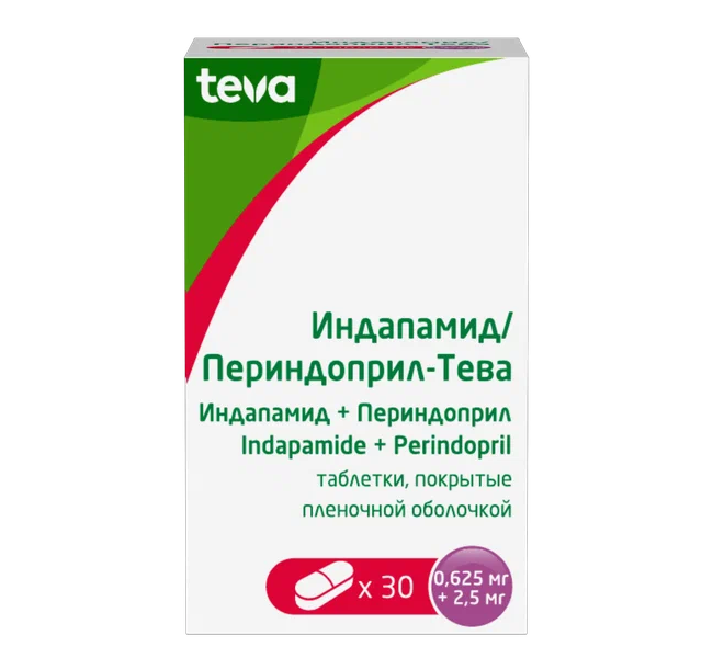 Индапамид/Периндоприл-Тева таблетки покрытые плёночной оболочкой 0,625мг+2,5мг №30
