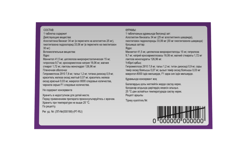 Действующее вещество: Алоглиптин, Пиоглитазон
