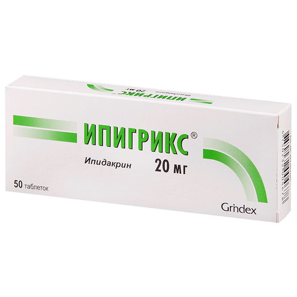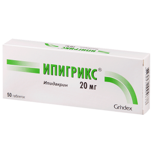Активное вещество: ипидакрина гидрохлорида моногидрат 21,6 мг (в пересчёте на ипидакрина гидрохлорид 20,0 мг)