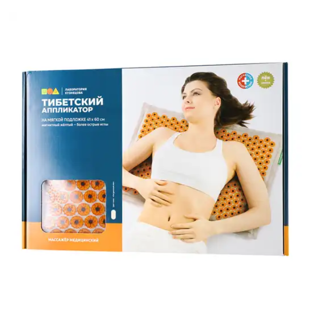 Тибетский аппликатор (современный аппликатор Кузнецова) на мягкой подложке 41 х 60 см – это большой универсальный акупунктурный игольчатый медицинский массажер. С его помощью очень удобно воздействовать на большинство зон: спину, живот, ягодицы, бедра, ступни. Этот современный эффективный массажный коврик идеально подходит не только для лечебных воздействий, но также для релаксации или повышения тонуса (в зависимости от зоны воздействия). Важно! Тибетский аппликатор прошел проверку и зарегистрирован Росздравнадзором в качестве медицинского изделия.