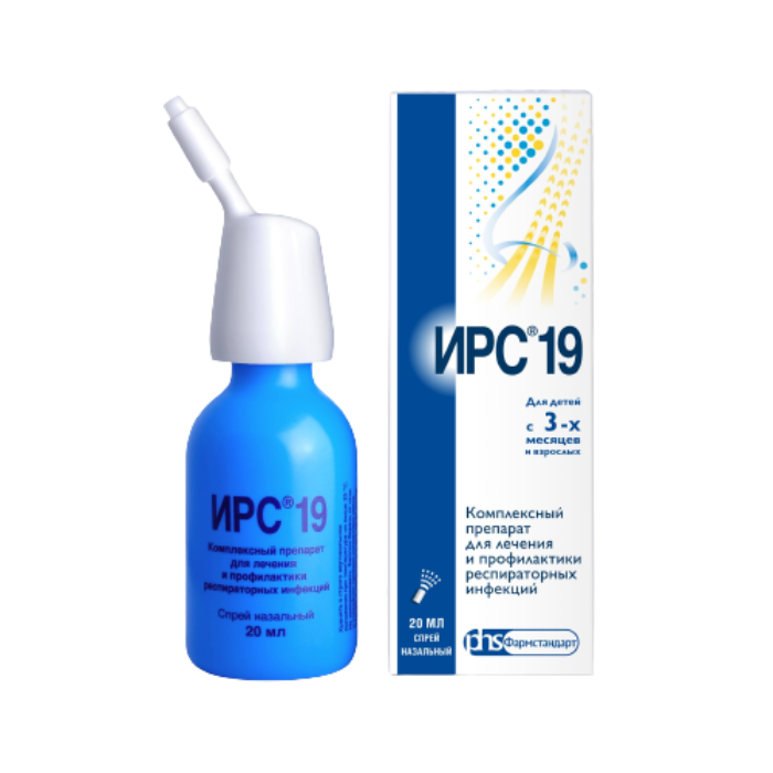 При распылении ИРС® 19 образуется мелкодисперсный аэрозоль, который покрывает слизистую оболочку носа, что приводит к быстрому развитию местного иммунного ответа. Специфическая защита обусловлена локально образующимися антителами класса секреторных иммуноглобулинов типа A (IgA), препятствующими фиксации и размножению возбудителей инфекции на слизистой. Неспецифическая иммунозащита проявляется в повышении фагоцитарной активности макрофагов и увеличении содержания лизоцима.