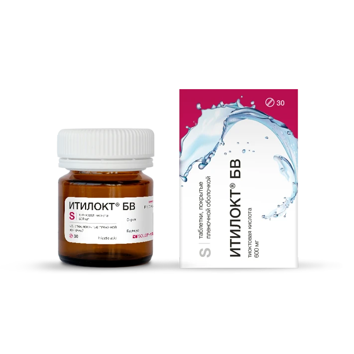 Препарат Итилокт® БВ (быстрого высвобождения) представляет собой оптимизированную лекарственную форму тиоктовой кислоты для перорального применения, которая позволяет избежать высокой вариабельности концентрации тиоктовой кислоты в плазме крови.