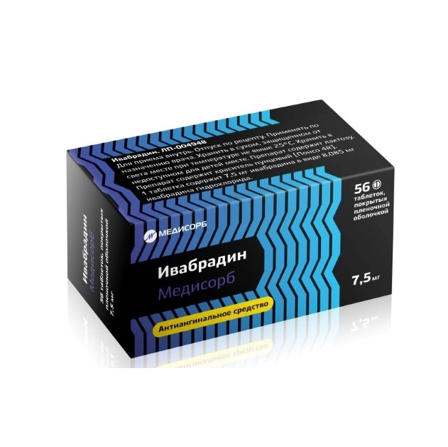 Ивабрадин Медисорб таблетки покрытые плёночной оболочкой 7,5мг №56