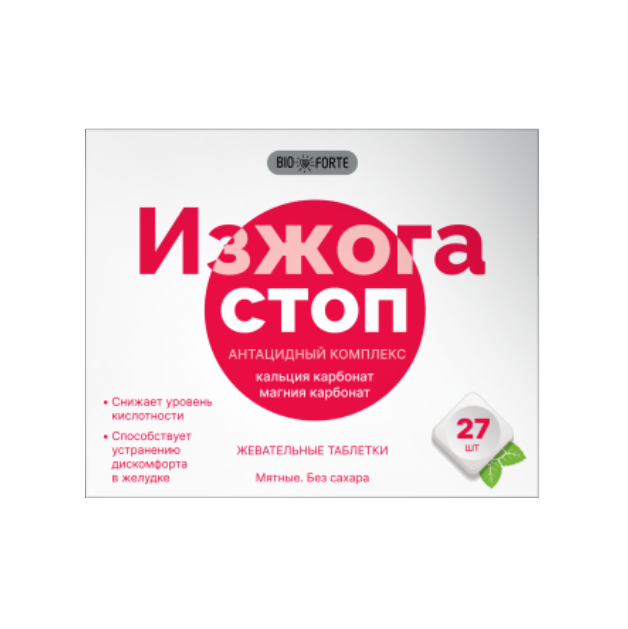 Изжога стоп BioForte мятные жевательные таблетки без сахара №27