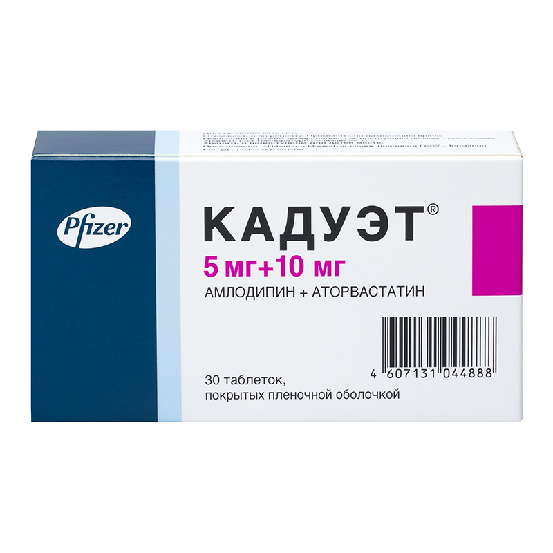 Кадуэт таблетки покрытые плёночной оболочкой 5мг+10мг №30